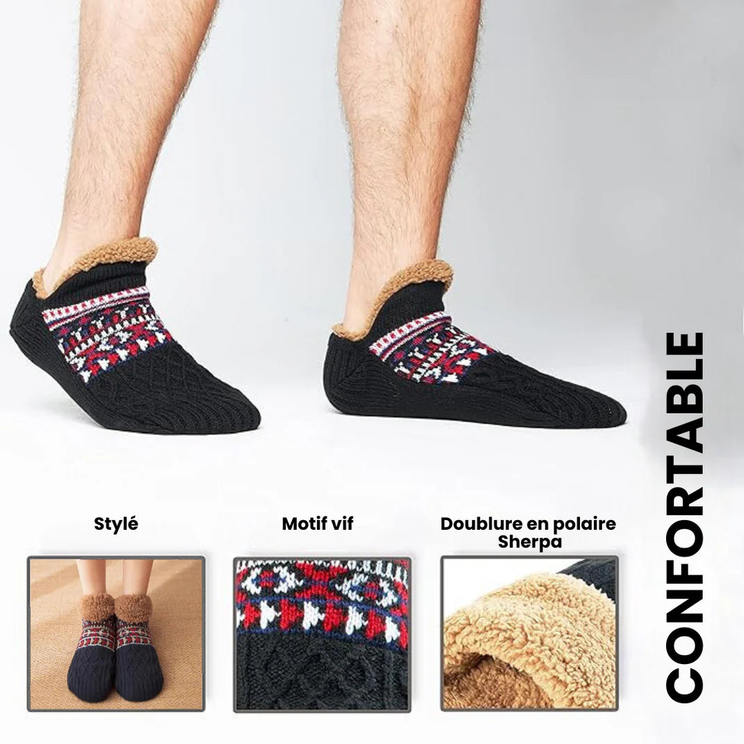 Contrairement aux chaussons classiques qui perdent rapidement leur chaleur et deviennent lourds ou humides, nos chaussons SoleaFeet utilisent une fourrure thermique respirante qui maintient une chaleur constante sans surchauffe. Leur structure légère et extensible épouse parfaitement la forme de votre pied, offrant un confort souple que les chaussons rigides ne peuvent pas égaler.